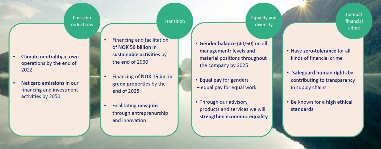 We will create value and profitability and concurrently consider climate, environment and social conditions. Stopping climate change and contributing to the transition to a more sustainable business community will have a special focus for the SpareBank 1 Sør-Norge group in the future.