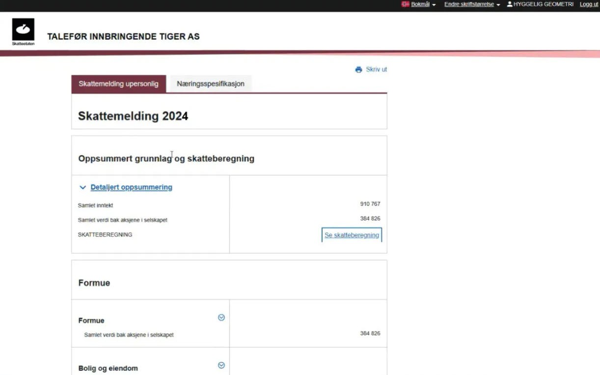 Skattemelding og næringsspesifikasjon sendes inn komplett til Altinn.