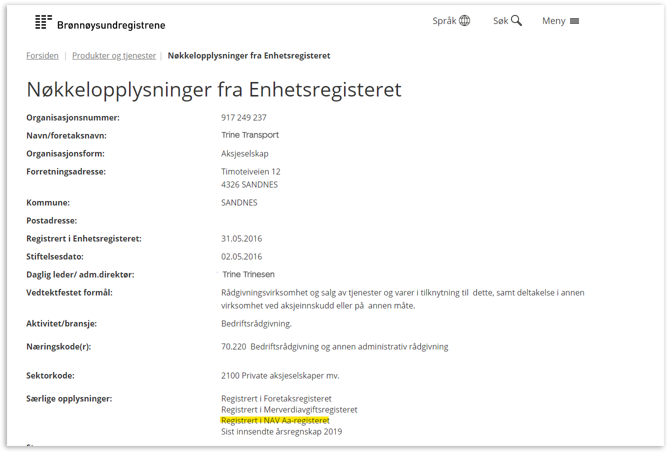 Finn ditt virksomhetsnummer