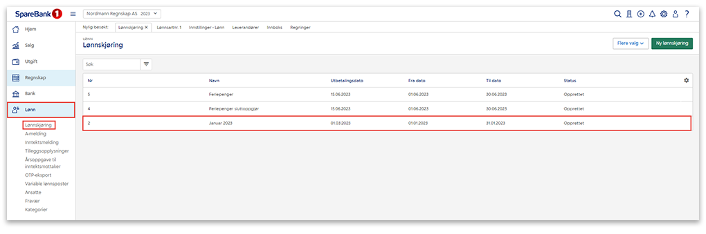 2. Klikk på en lønnskjøring med status Opprettet.