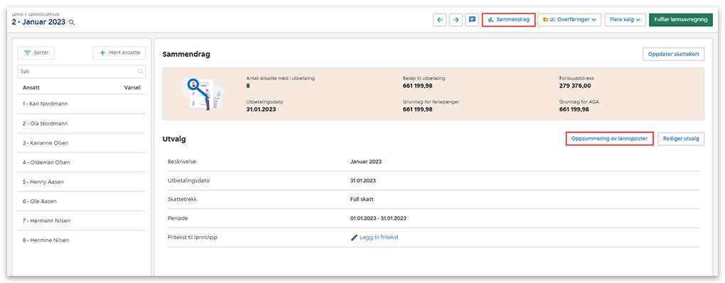 3. Klikk på Oppsummering av lønnsposter. Hvis du ikke får opp siden slik bildet nedenfor illustrerer, kan du klikke på Sammendrag.