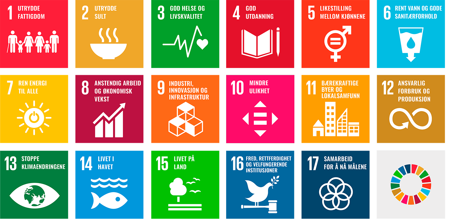 FNs 17 bærekraftsmål er verktøy for å bidra til en rettferdig og bærekraftig verden. Vi har valgt å ha ekstra fokus på fire mål hvor vi kan påvirke på en effektiv måte.