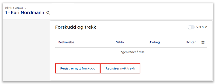 3. Klikk på enten Registrer nytt forskudd eller Registrer nytt trekk