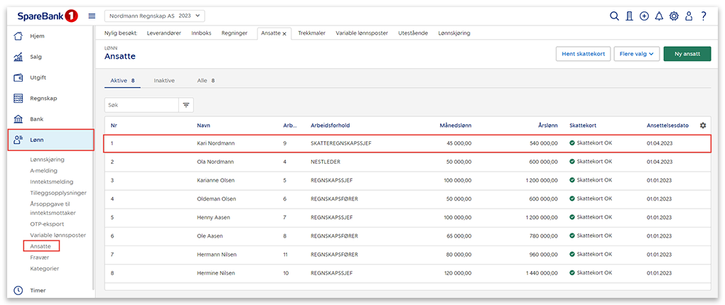 1. Gå til Lønn i venstremenyen og velg Ansatte.