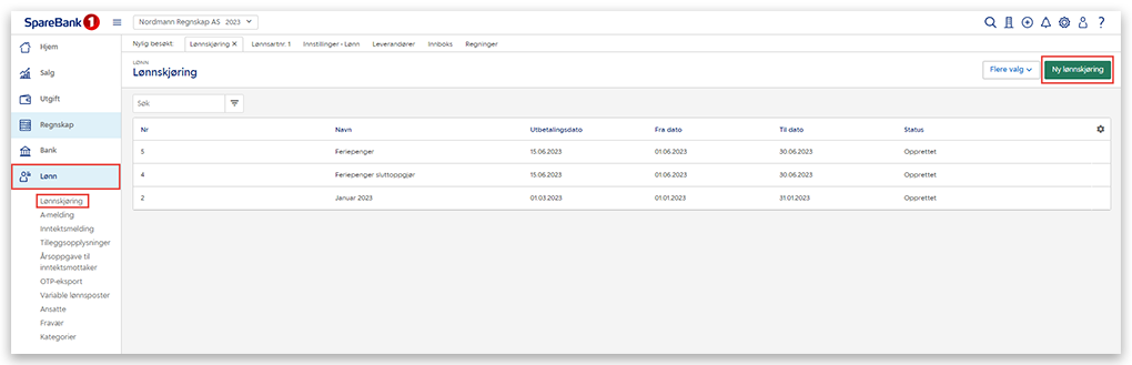 2. Klikk på Ny lønnskjøring