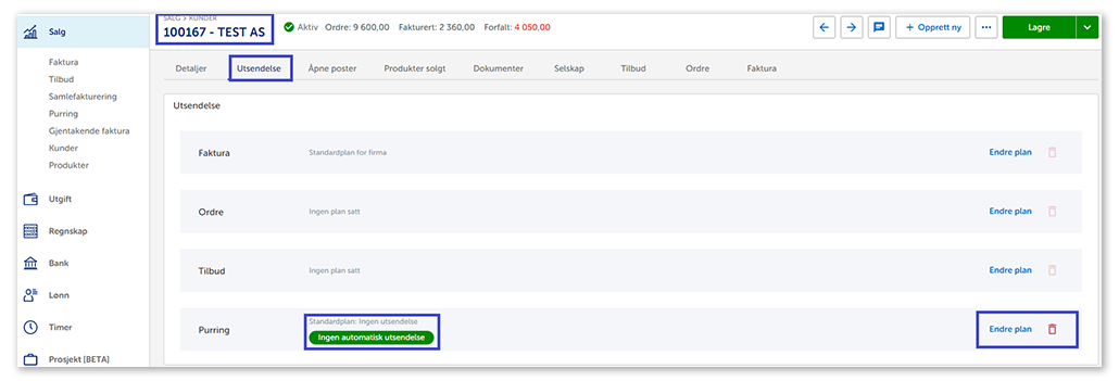 NB. Oppdater alle kunder du ikke ønsker å sende automatisk purring på.