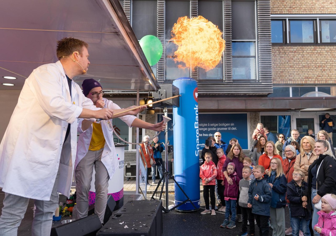Vitensenteret vil holde vitenshow utenfor bankens lokaler 11.30 og 13.00. Det blir spennende eksprimenter og demonstrasjoner, og kanskje blir det litt action og smell?