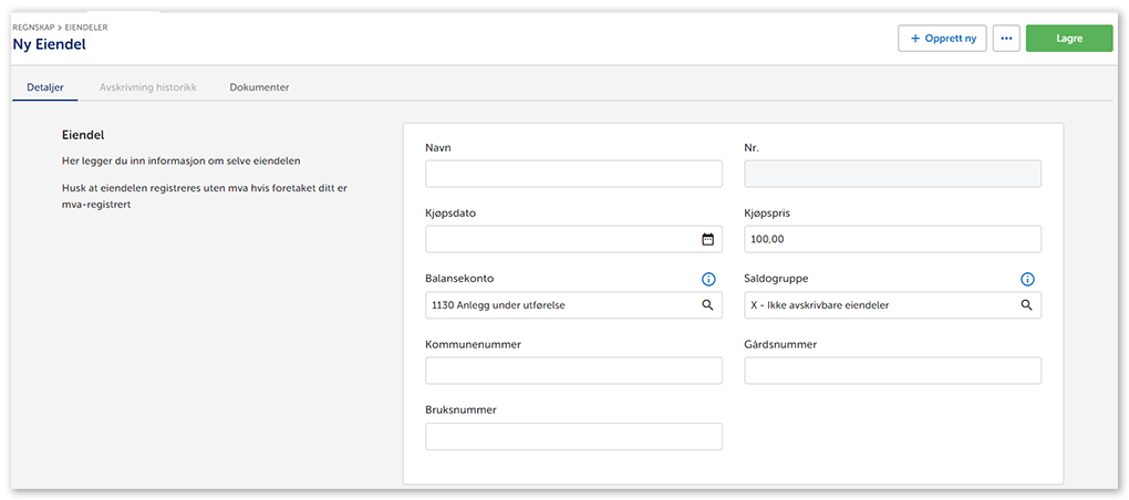 Skal du registrere en eksisterende eiendel? Se hvordan du gjør det her.