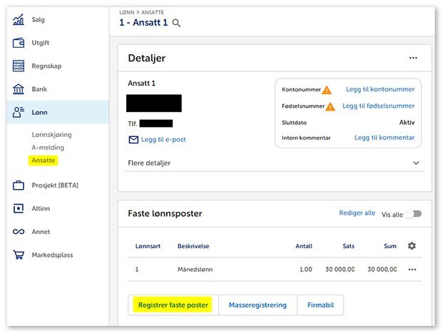 Hvordan legger jeg inn fast månedslønn og andre poster for ansatte?