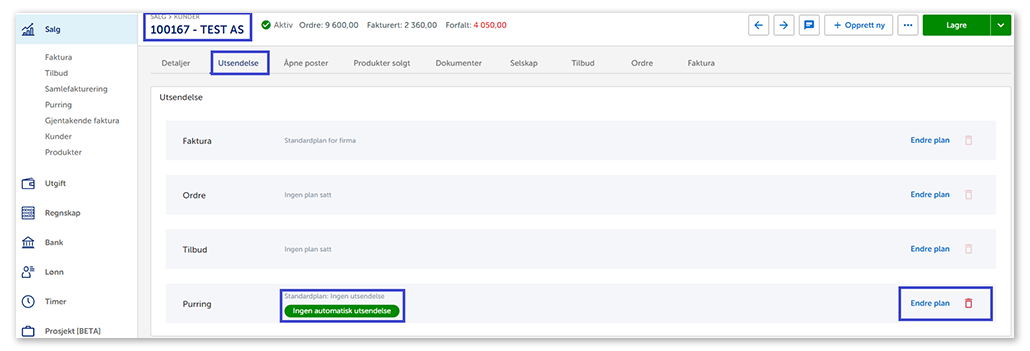 NB. Oppdater alle kunder du ikke ønsker å sende automatisk purring på.