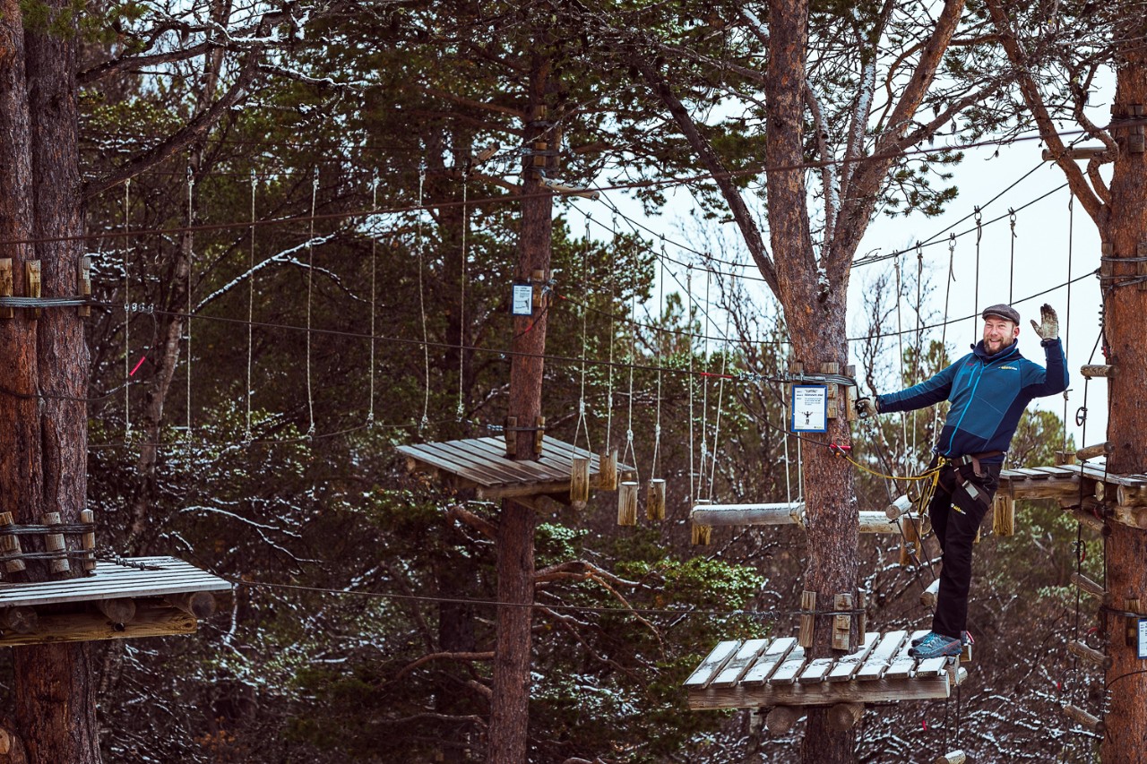 LANGT OPP, HØGT NED. Då Jan Slålien saman med bestekameraten Ronny Nestvold i 2008 bygde ein av dei aller fyrste klatreparkane i Noreg, attpåtil i steinrøysa langt oppi Bøverdalen, var det ein og annan realist som rista på hovudet. Sidan har reiselivsradarparet utløyst mang ein kronisk nakkesleng. Zipline under Prestfossbrua. Aktivitetspark i sentrum. Gyrotrampoliner. Oppføring i Guiness Rekordbok. Lavvoar nok til å huse halve Lom. Og så mykje meir at det ikkje er plass til alt her. I år bikkar Aktiv i Lom fem millionar i omsetnad på sine mange sprell i og rundt halve Noreg si favorittfjellbygd. Og fleire skal det bli.