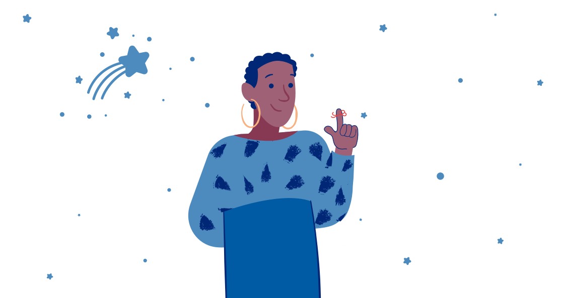 Grafisk illustrasjon: Dame med tråd rundt fingeren.