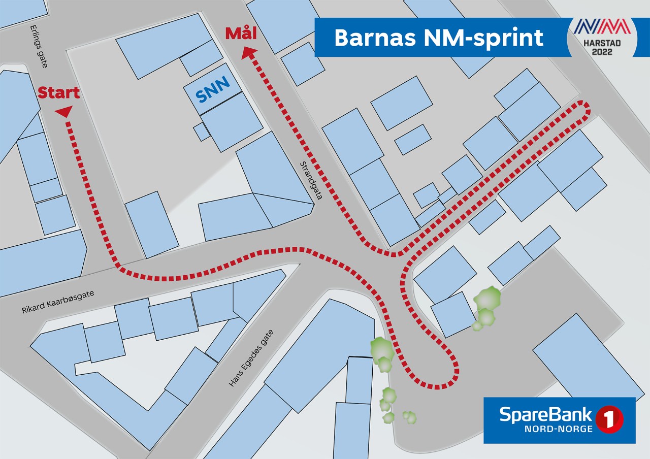 Barnas NM-sprint starter klokka 18.00. De yngste deltakerne får slippe til først, og så starter puljene for de eldre barna i tur og orden. Alle skiløperne må være klare i startområdet senest klokka 17.50.
