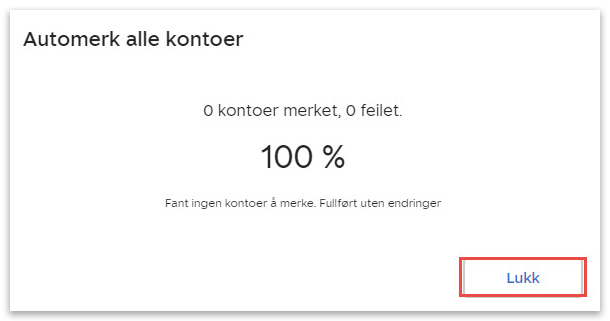 5. Når prosessen er ferdig vil du få en melding som viser antall kontoer med lukkede poster.