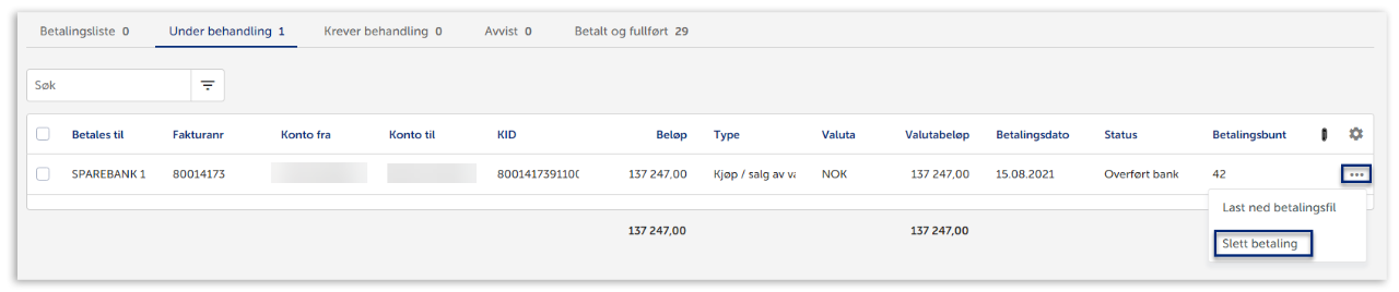 Husk at du fortsatt må slette betalingen fra nettbanken dersom du sletter den fra SpareBank 1 Regnskap.