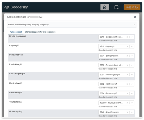 4. Fyll inn integrasjonsnøkler, sett opp fartøy og oppgi hvilke kontoer avregningsverdiene skal knyttes opp mot.