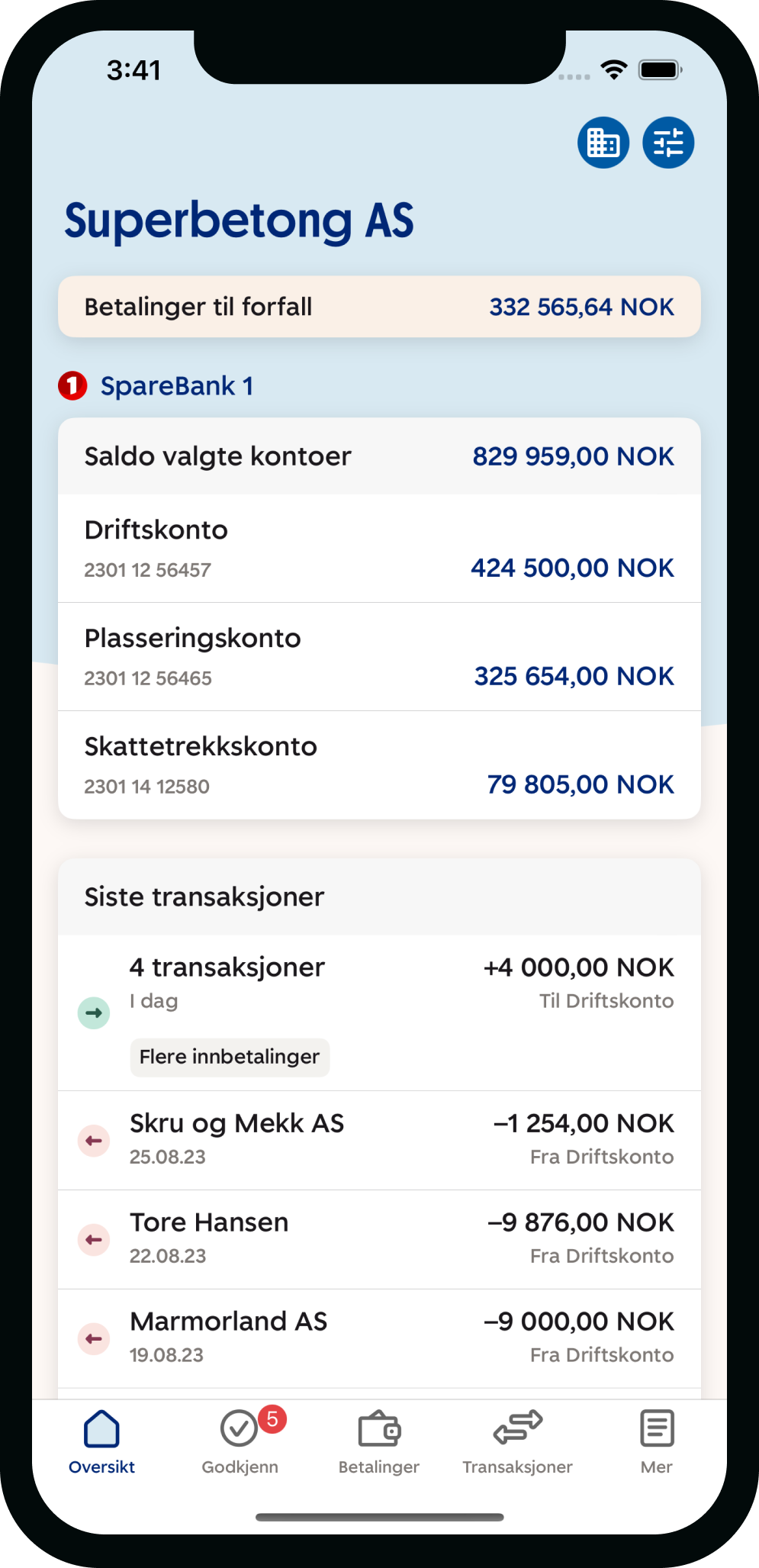 • full oversikt over inn- og utbetalinger, og hvor mye som ligger til forfall.