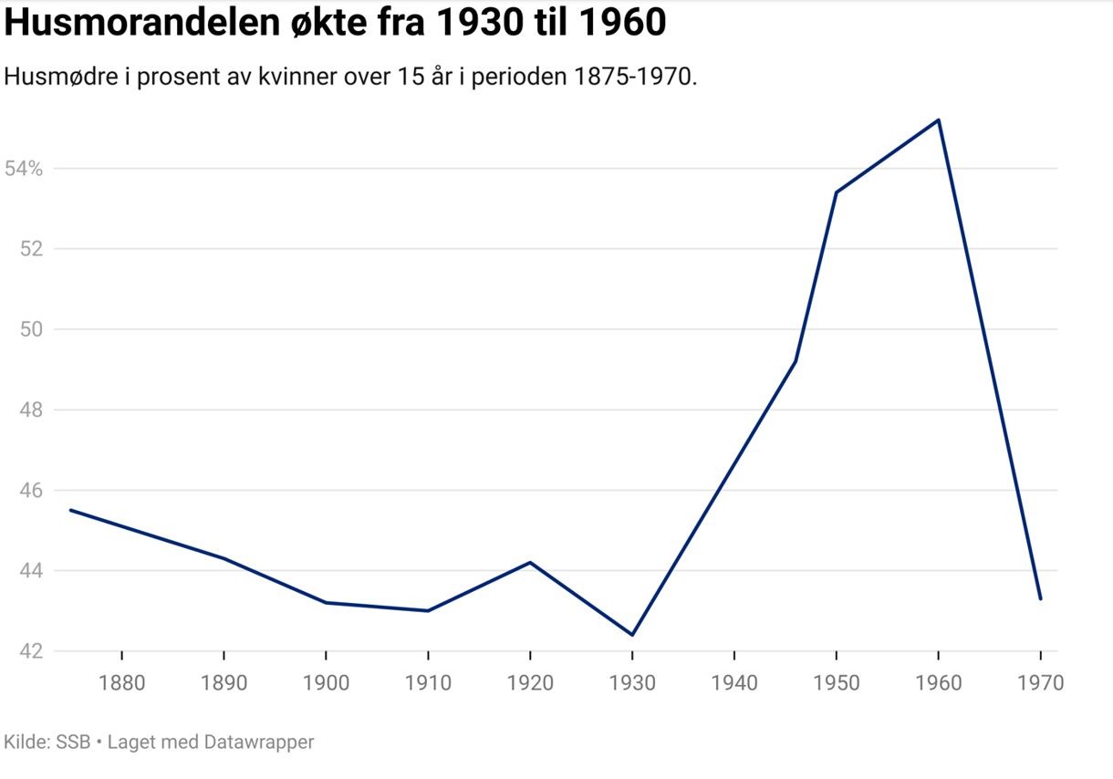 De første tiårene etter andre verdenskrig blir kalt husmorperioden i norsk historie. Norge var blant landene med lavest andel gifte yrkeskvinner til langt ut i 1960-årene. Høy arbeidsledighet hadde bidratt til å presse gifte kvinner ut av arbeidsmarkedet allerede i mellomkrigstiden og under andre verdenskrig. I etterkrigstiden var det babyboom med store barnekull. En husmorvennlig skattepolitikk ble også en betydelig hindring for å få flere gifte kvinner ut i yrkeslivet, fram til den ble endret i 1959. NRK har laget en dokumentarserie om hvordan reklame framstilte husmødre gjennom husmorperioden.