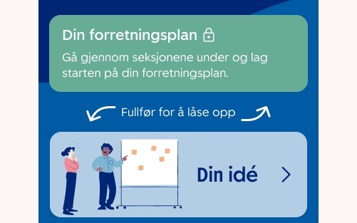I dag ligger inngangen til forretningsplanen nederst på forsiden. Vi flytter den øverst og gjør den litt større. I tillegg viser vi helt i starten et eksempel på hvordan PDF-en med forretningsplanen kommer til å se ut.