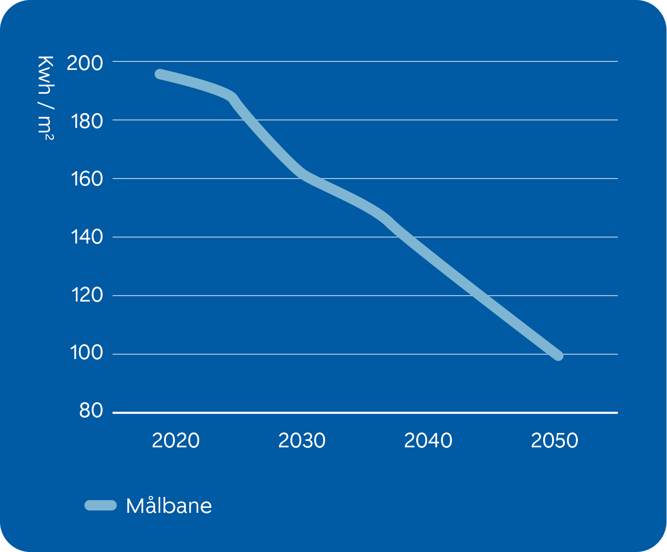 Målbanen er oppgitt i kWh/m2 og bygger på EU`s bygningsenergidirektiv hvor målene som legges er grunn en gjennomsnittlig reduksjon i primærenergibehovet på 16 prosent innen 2030 og 20–22 prosent innen 2035. Innen 2050 er målet at bygningsmassen skal være i tråd med ambisjonen om en nullutslipps bygningsmasse. I tillegg til en reduksjon i energiforbruket ventes stadig lavere utslipp i kraftsystemet gjennom utfasing av fossile energikilder som er nødvending om de overordene klimamålene skal nås.