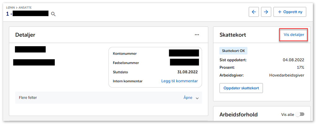 - Gå da til Vis detaljer under Skattekort.
