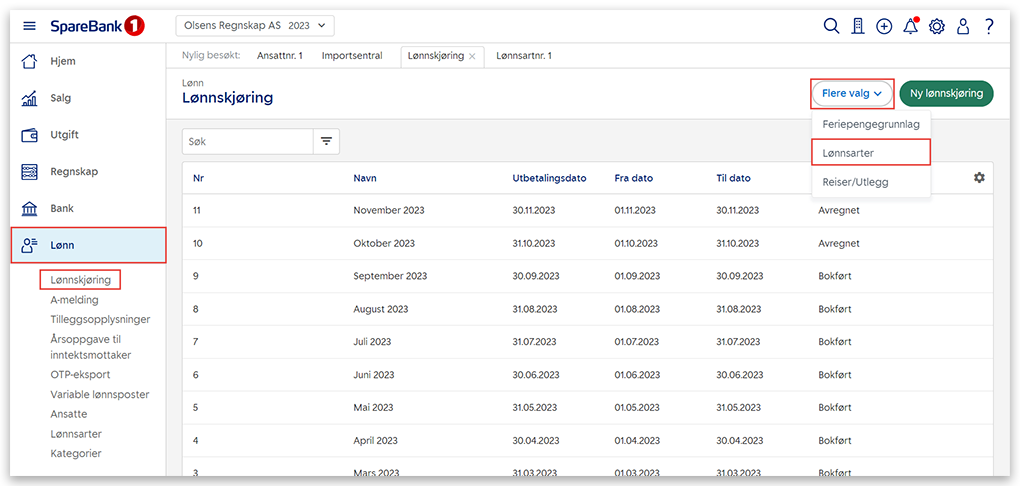 1. Gå til Lønn i venstremenyen og velg Lønnskjøring