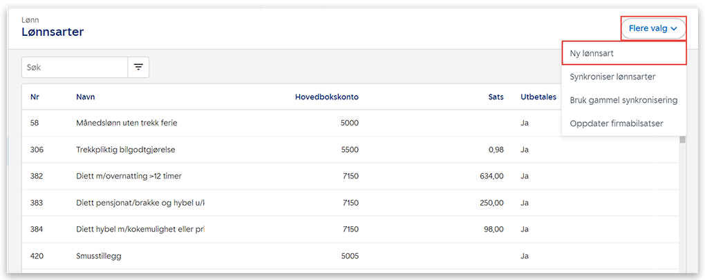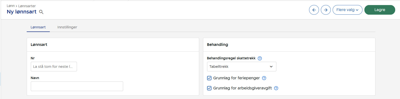 Du kan opprette egne lønnsarter hvis systemets standard lønnsarter ikke dekker selskapets behov.