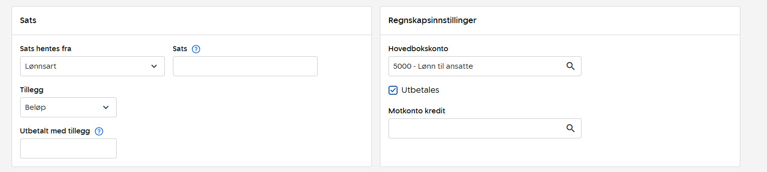 • Lønnsart: Systemet vil foreslå satsen som legges inn direkte på lønnsarten.