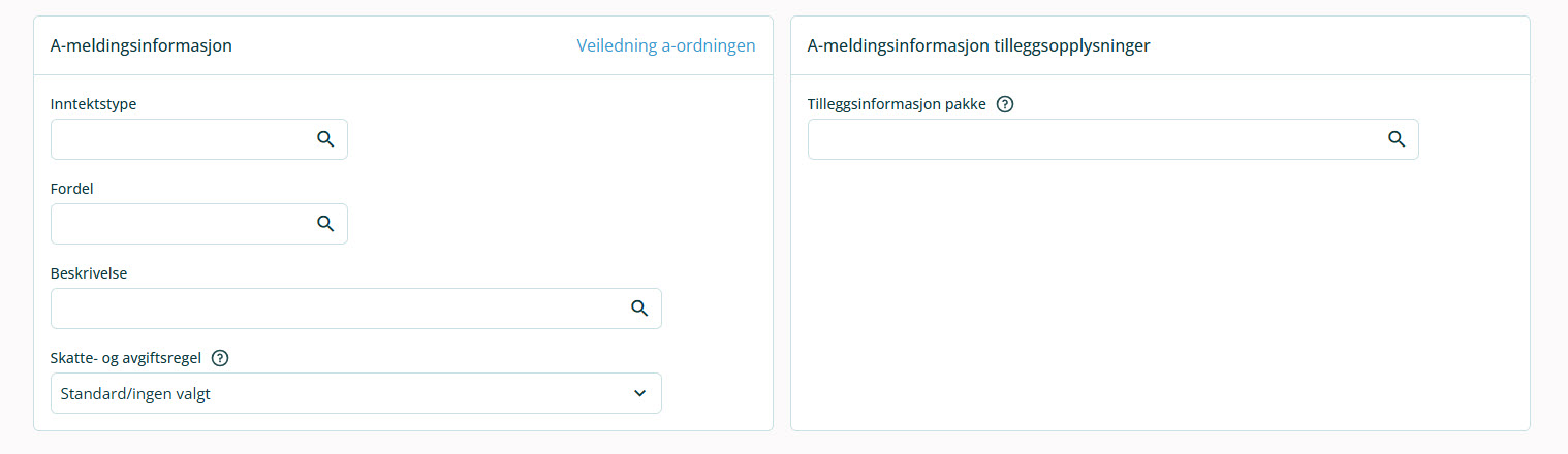 Noen kombinasjoner av inntektstyper, fordeler og beskrivelse vil gjøre at feltet Tilleggsinformasjon pakke blir tilgjengelig.