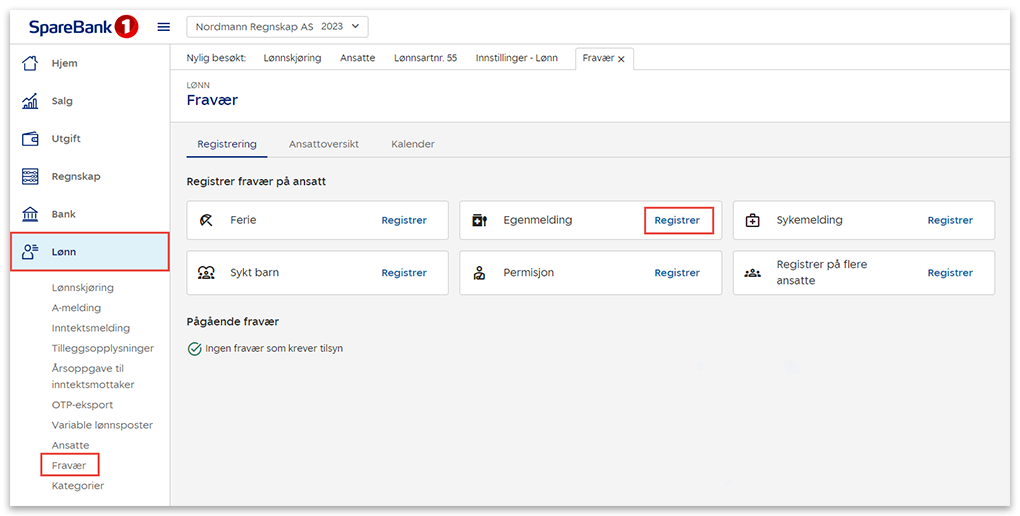 1. Gå til Lønn i venstremenyen og velg Fravær.
