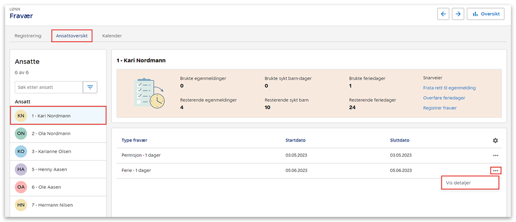 2. Gå til fanen Ansattoversikt og velg ansatt.