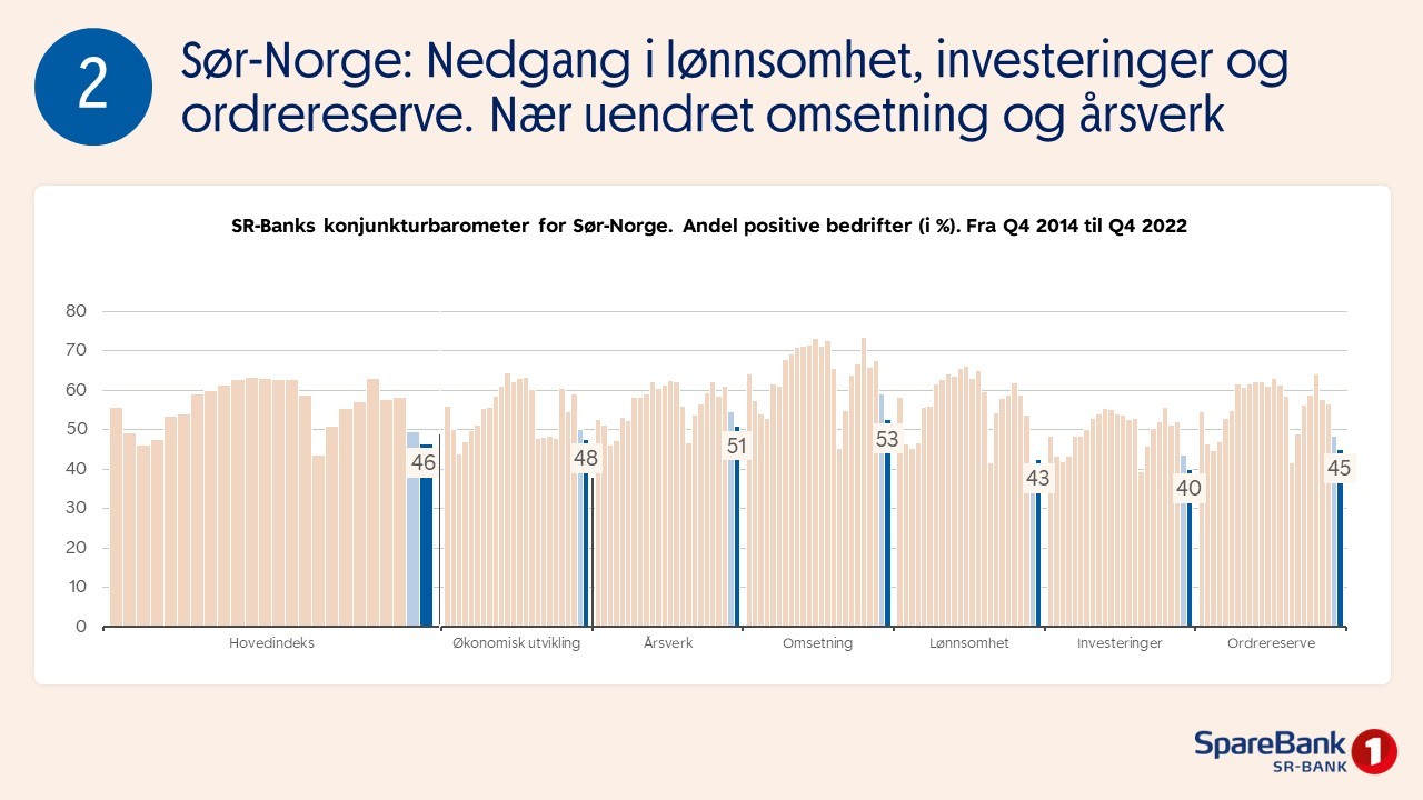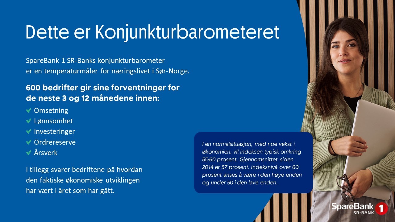 Konjunkturbarometeret fra SpareBank 1 Sør-Norge er temperaturmåleren for næringslivet i Sør-Norge.