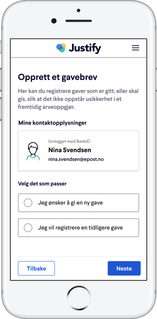 Tjenesten leveres av Justify AS. Du vil bli sendt til deres nettside for å opprette gavebrevet.